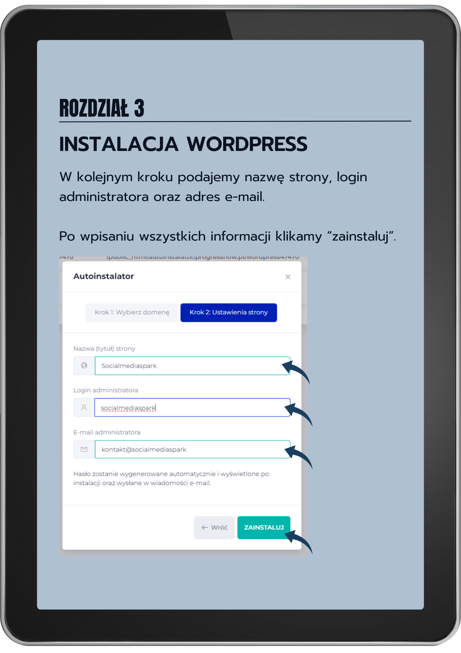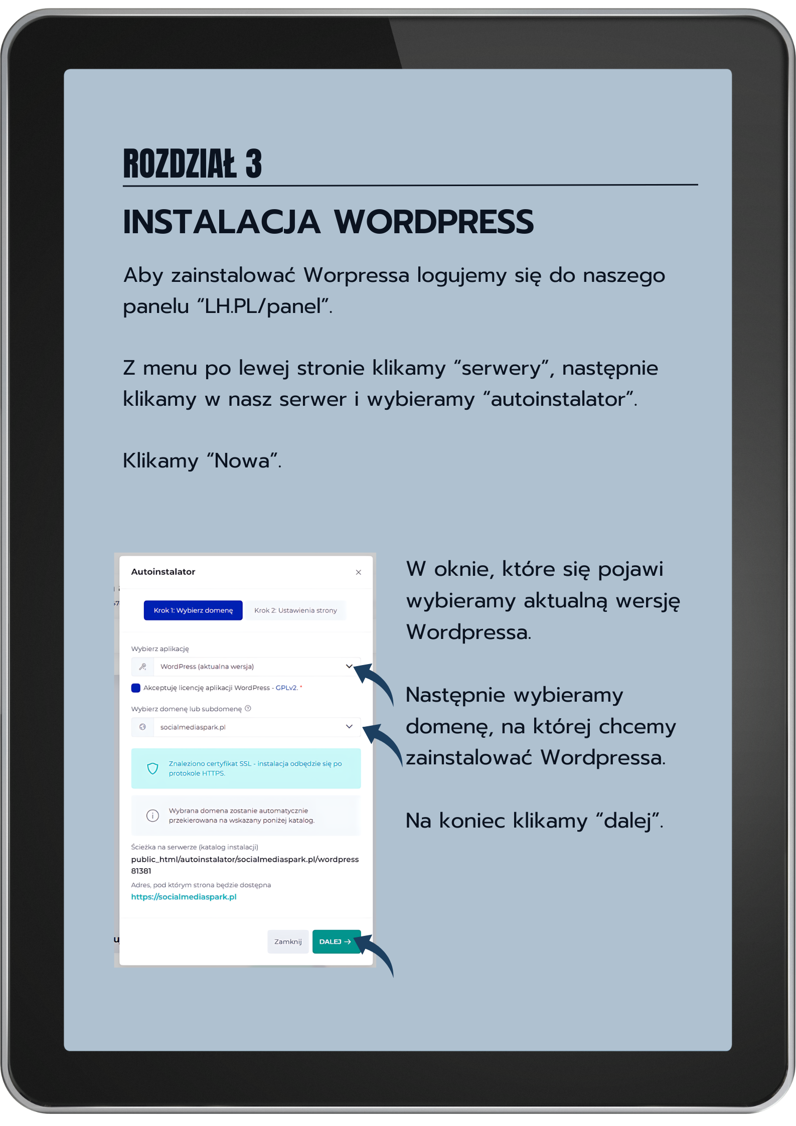 albo… Możesz kupić teraz ten eBook za 77zł, wykonać samodzielnie instrukcje pokazane na screenach i za max 3 dni mieć swoją gotową platformę.